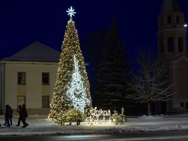 Įspūdinga Kalėdinė eglė Ukmergės miesto centre – šventinis apšvietimas ir dekoracijos, pritraukiančios miestiečius bei miesto svečius.
